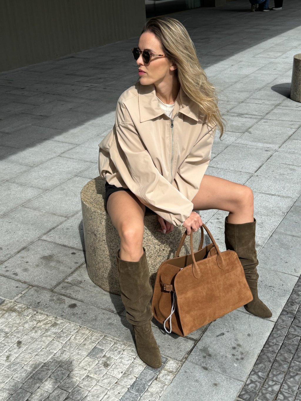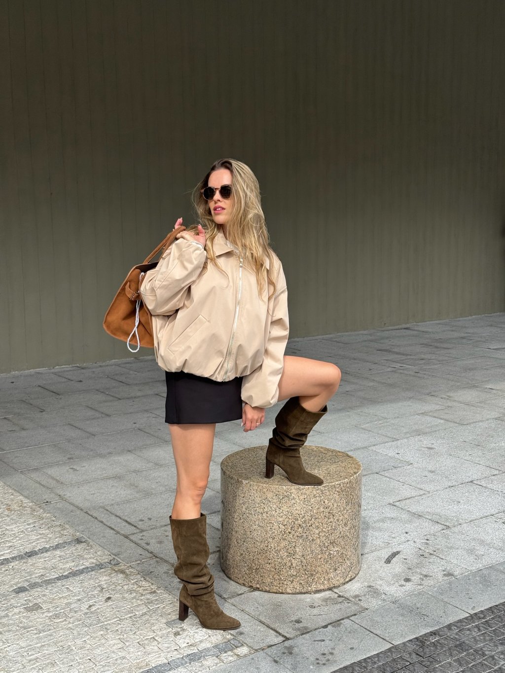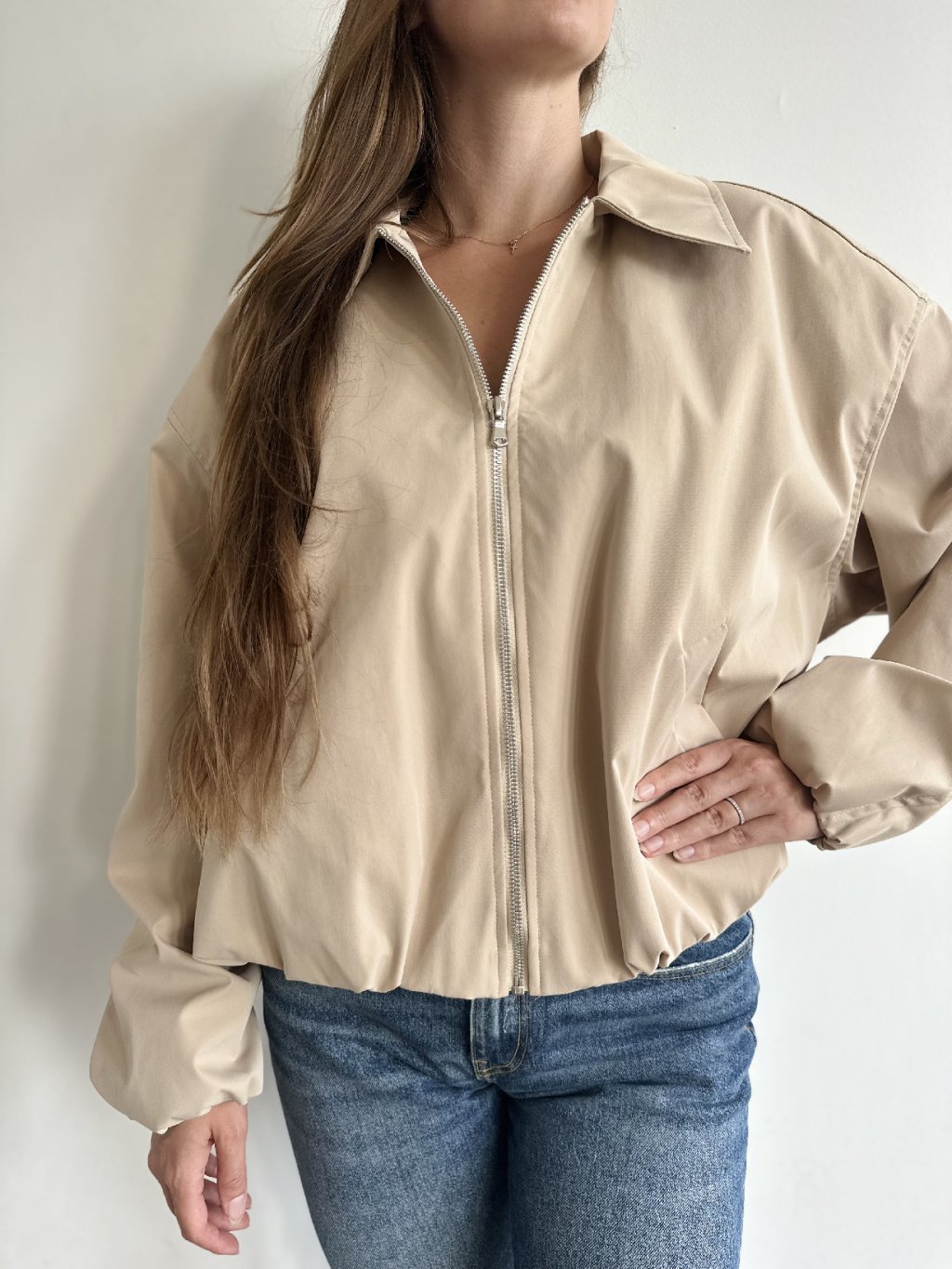 Stylová bomber bunda v béžové barvě je nadčasovým kouskem, který snadno sladíte s jakýmkoli outfitem. Díky stříbrnému zipu působí moderně a svěže, zatímco pružné náplety na rukávech a spodním lemu dodávají bundě typický „bomber“ střih a pohodlné nošení.