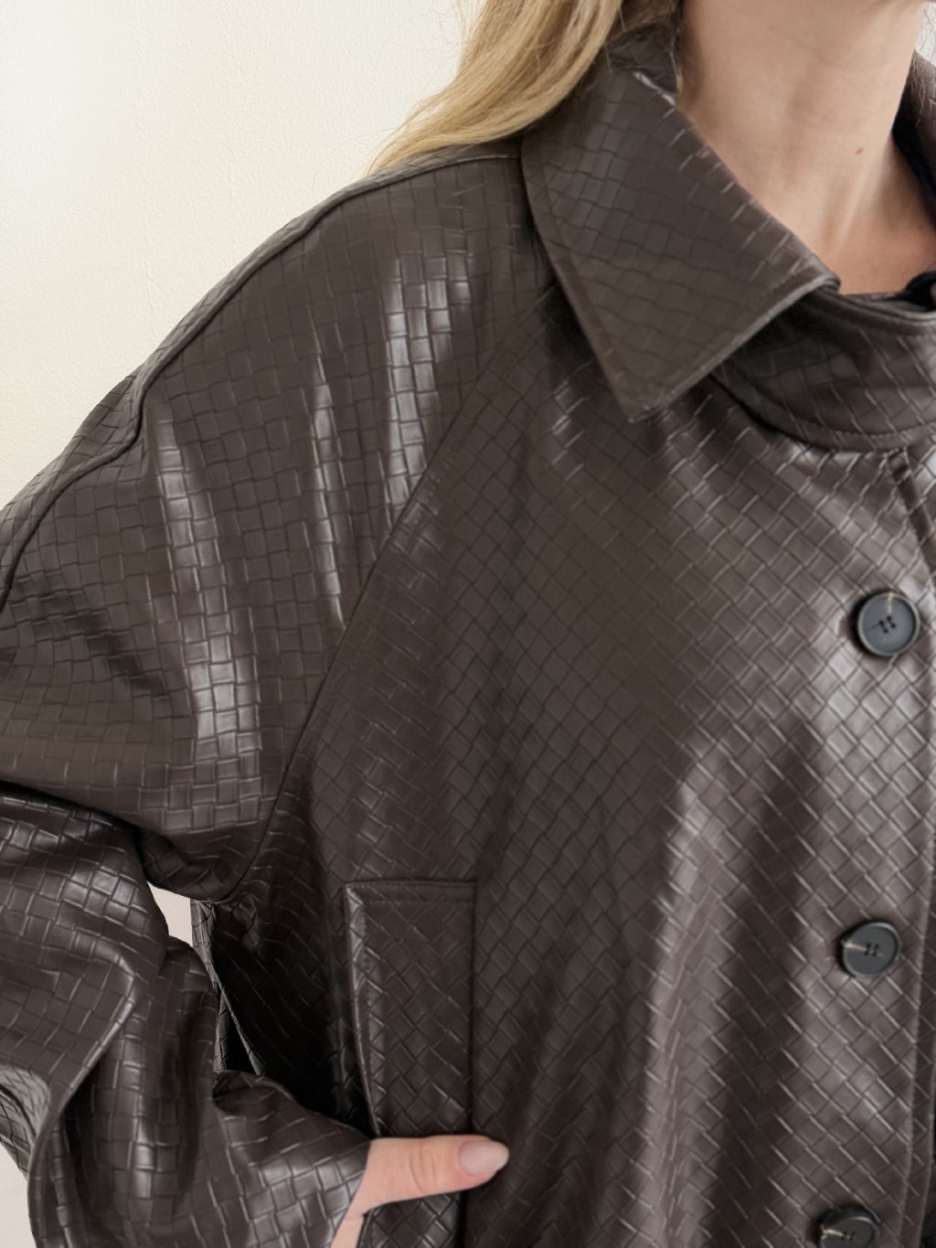 Tato bomber bunda z proplétané kůže v luxusní hnědé barvě působí sofistikovaně, nadčasově a zároveň velmi současně.