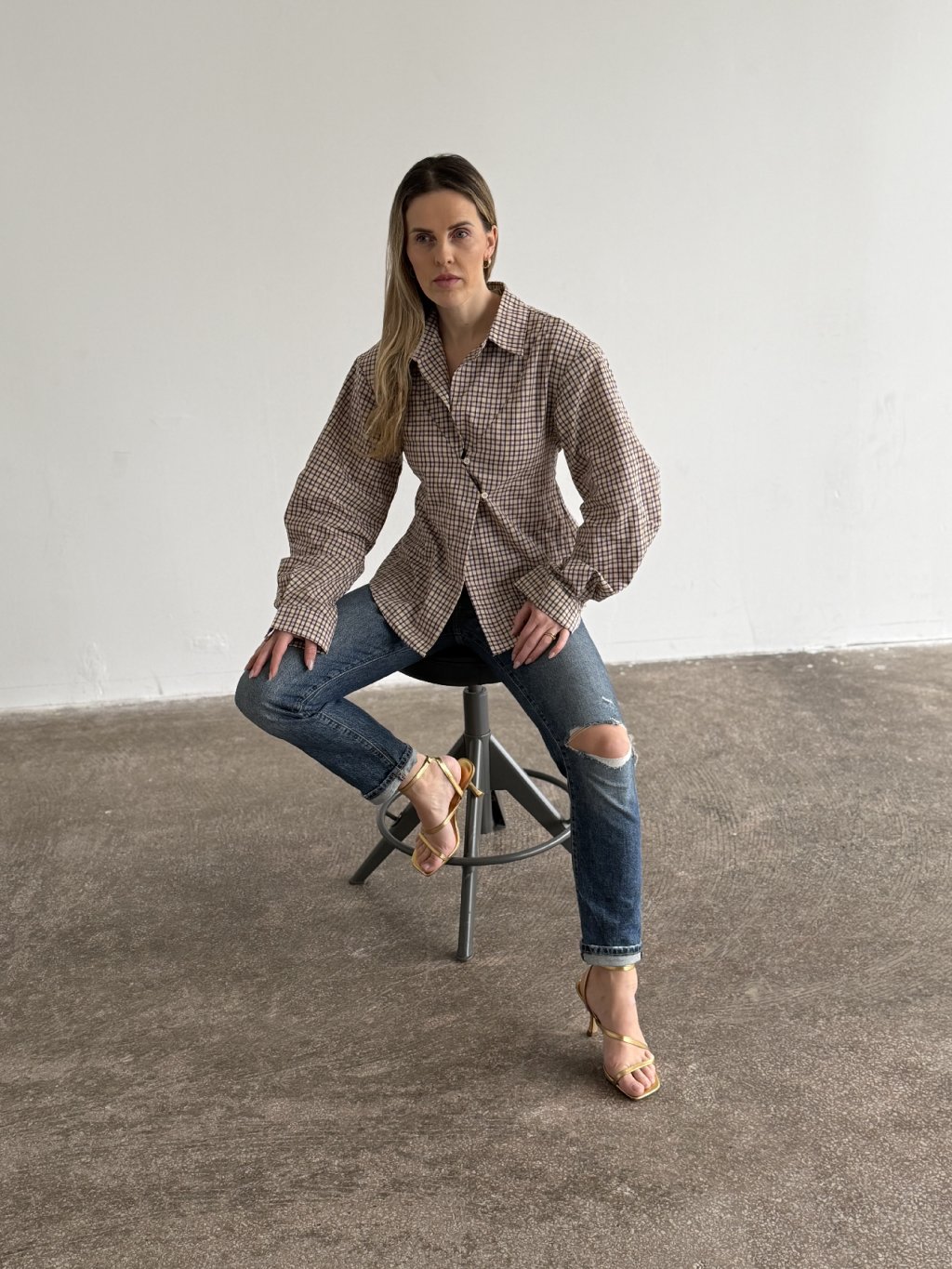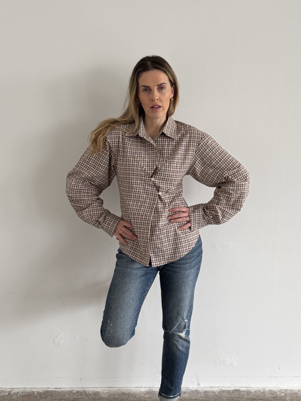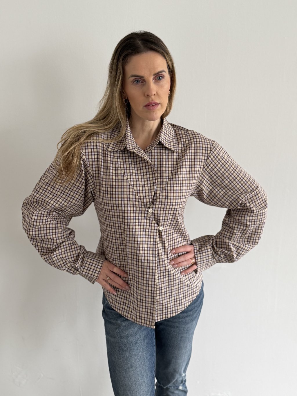 Nadčasová silueta s moderním detailem.Tato béžovo-hnědá károvaná košile je vyrobena ze 100% bavlny, která je příjemná na dotek, prodyšná a drží tvar po celý den.