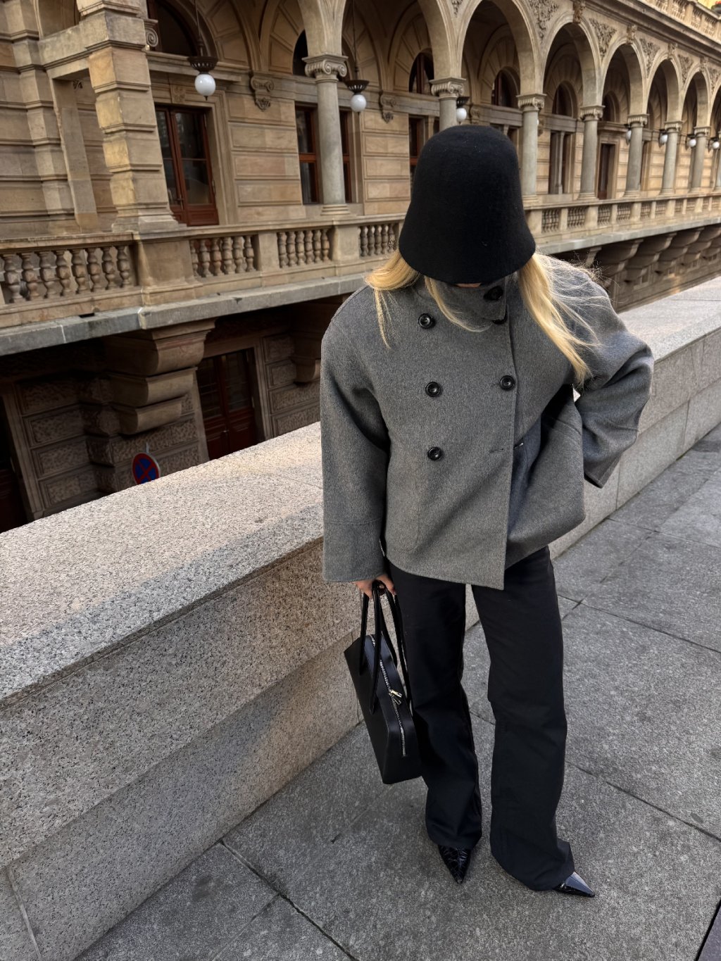 Díky své kratší délce je perfektní pro ty, kdo často cestují autem – neumačká se, neznečistí o dveře a stále působí upraveně.Univerzální odstín šedé ladí téměř ke všemu – od džín až po elegantní kalhoty či sukně.