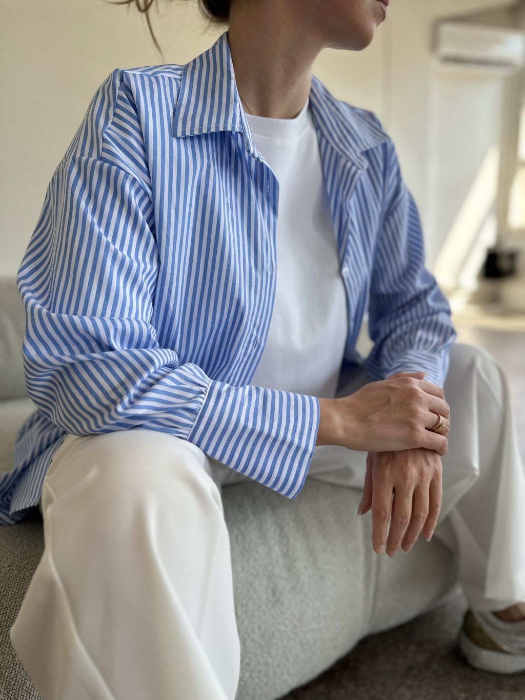 Lehká a vzdušná oversized košile s klasickým proužkem je ideálním kouskem pro ležérní i elegantní styling. Můžeš ji nosit jako košili, přes tílko nebo plavky. Nadčasový střih a kvalitní materiál zaručují pohodlí po celý den.