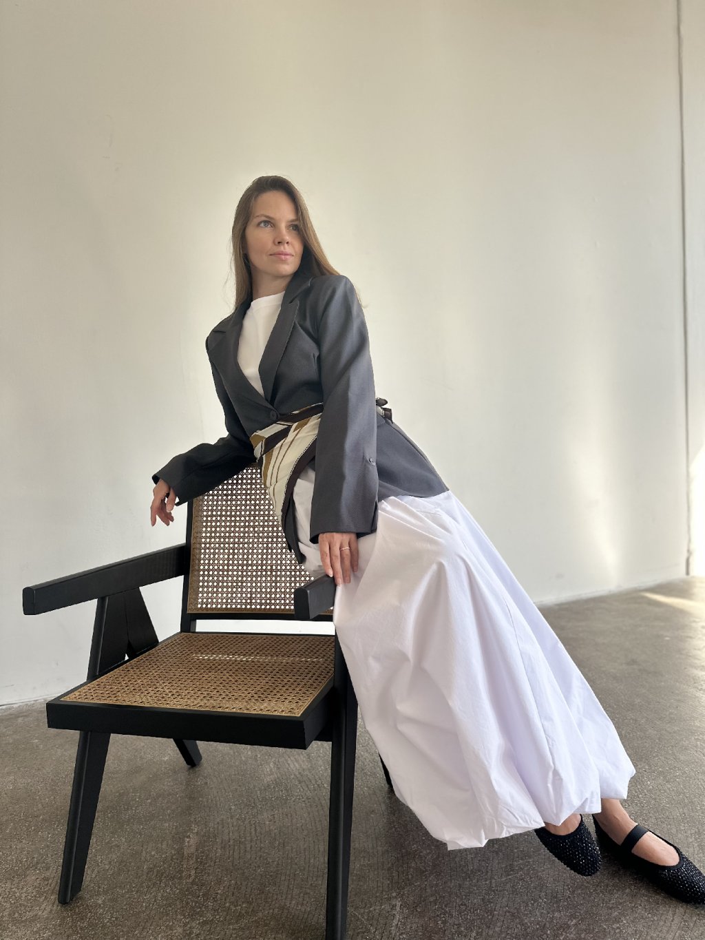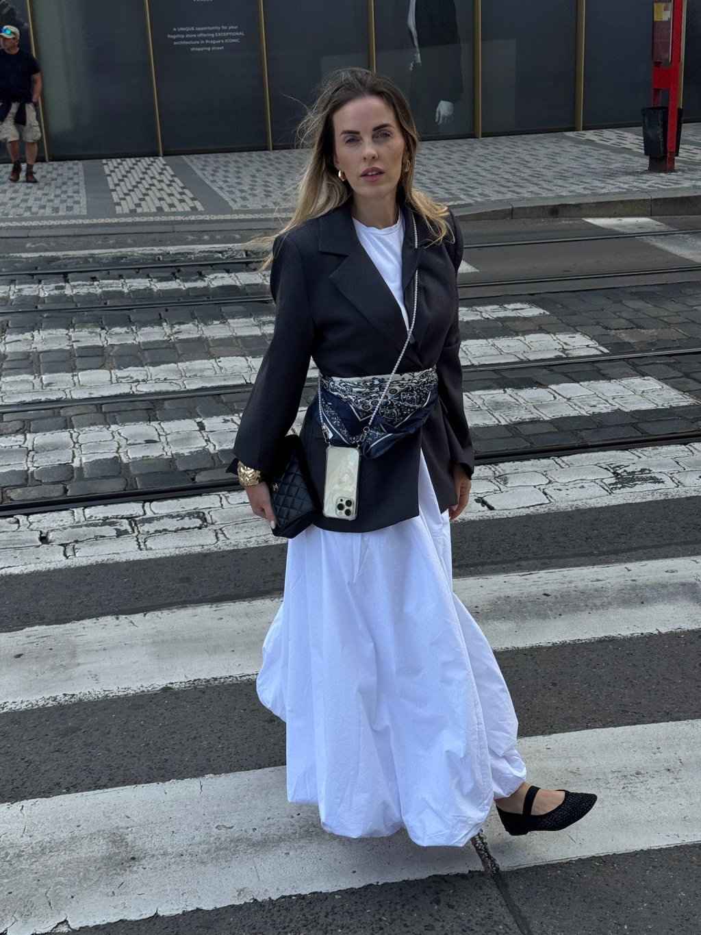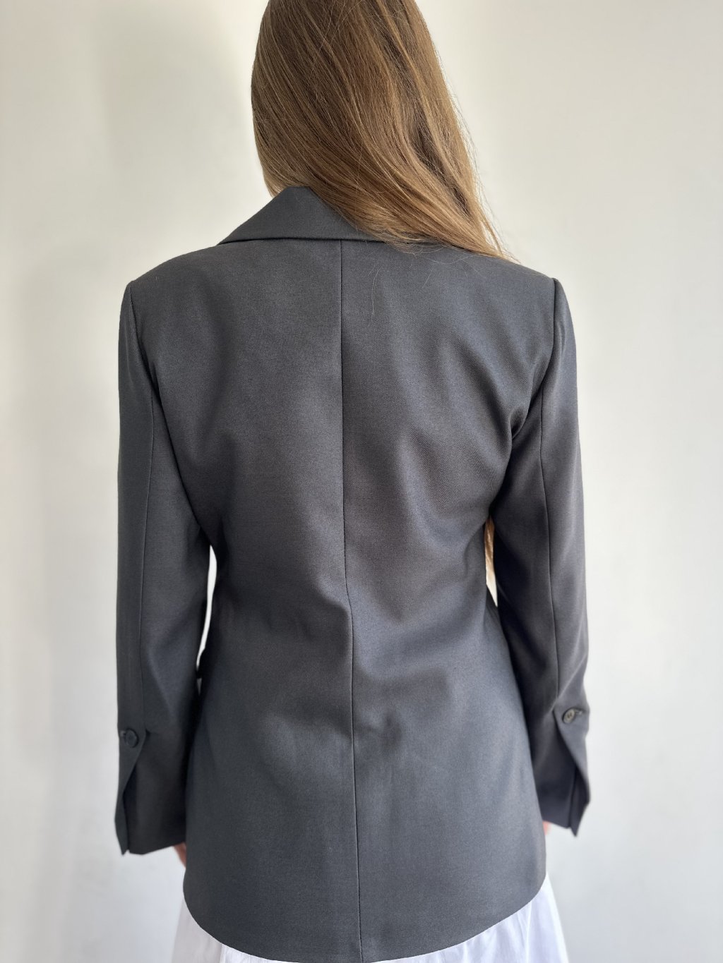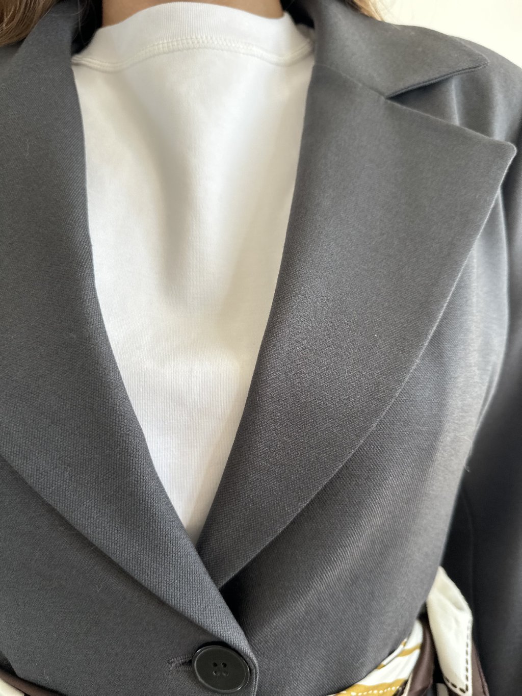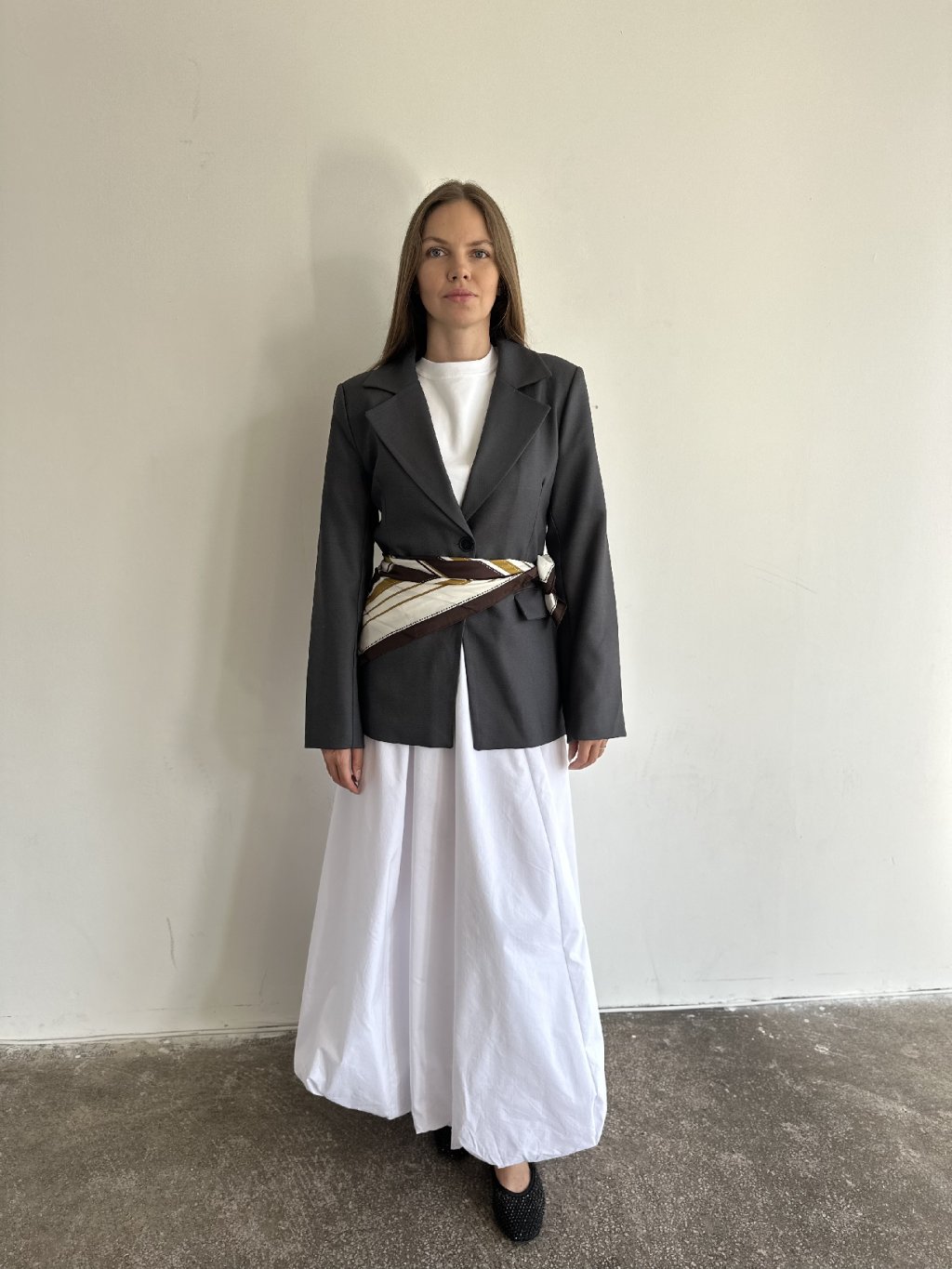 Sako má klasické klopové límce a kapsy s klopami, které podtrhují jeho nadčasový design. Jemně strukturovaná tkanina zajistí pohodlné nošení a snadné kombinování s kalhotami, sukní i šaty.